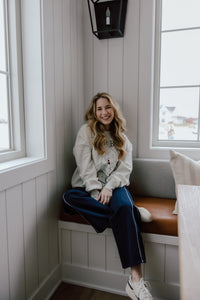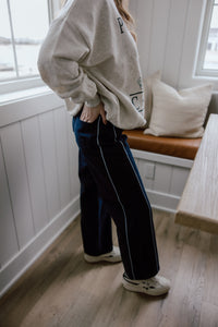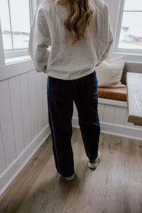 A different look on the barrel jean (almost) everyone knows & loves !! The Barrel Jean Twist in navy is a classic, medium barrel jean style with light contrast piping down the side of each leg for a fun, yet classic, look.
