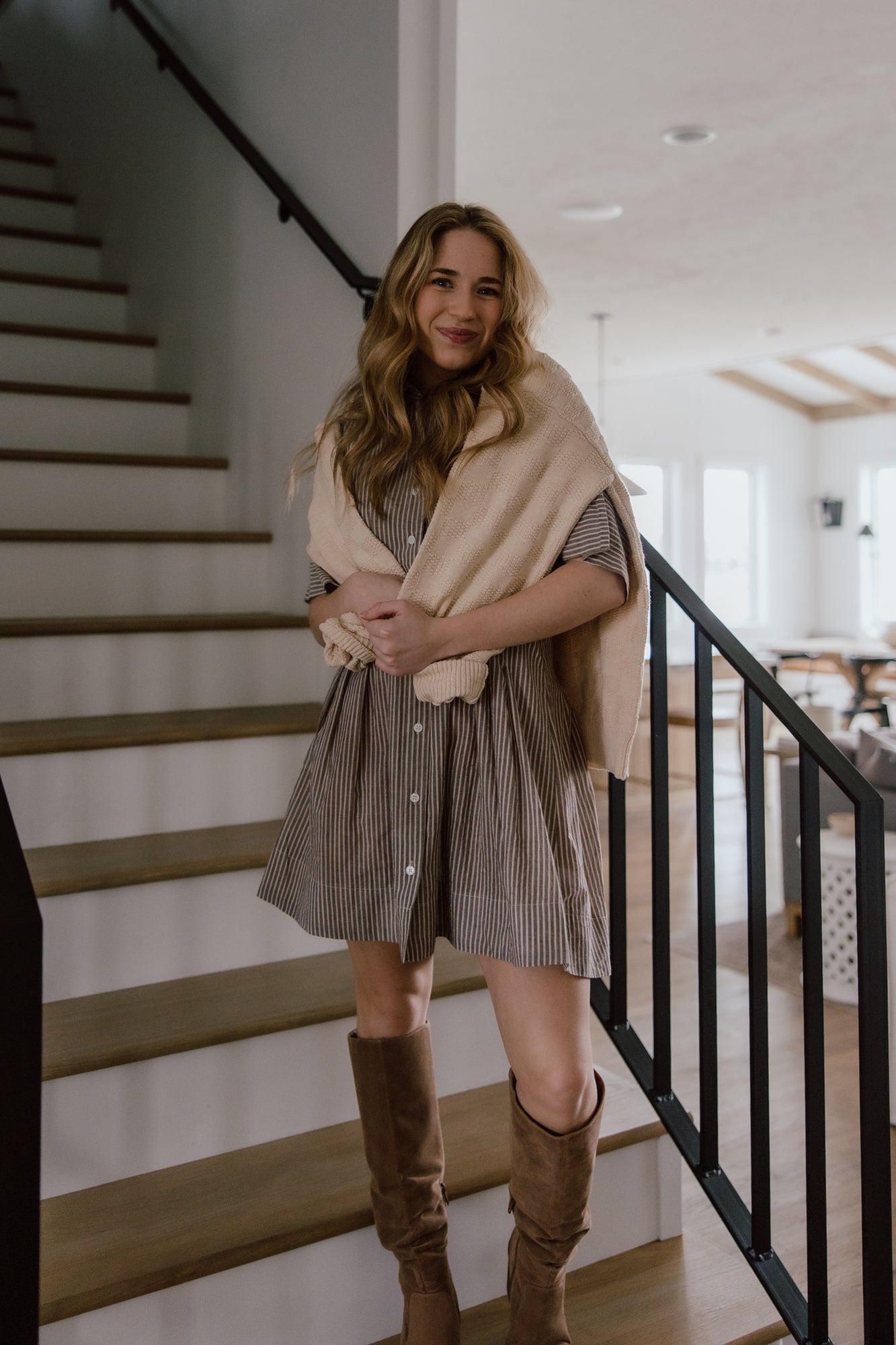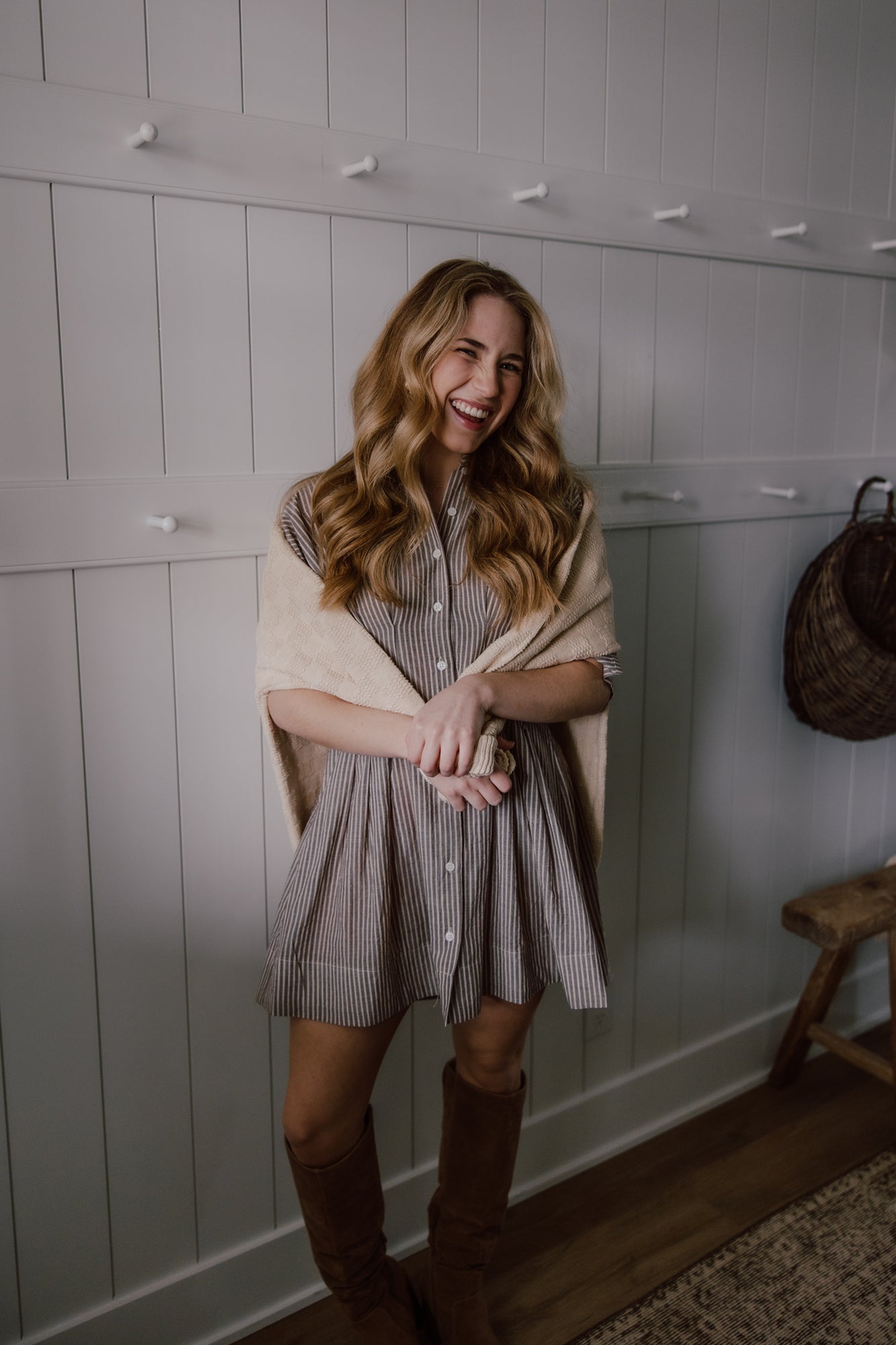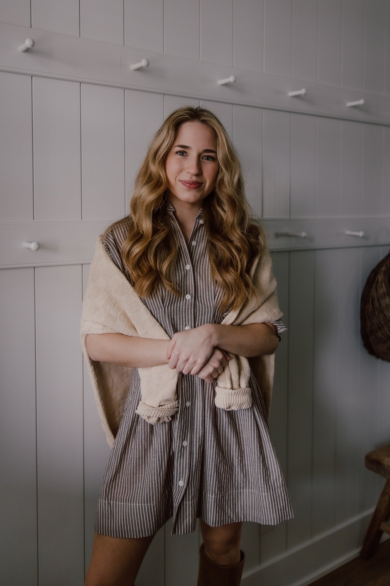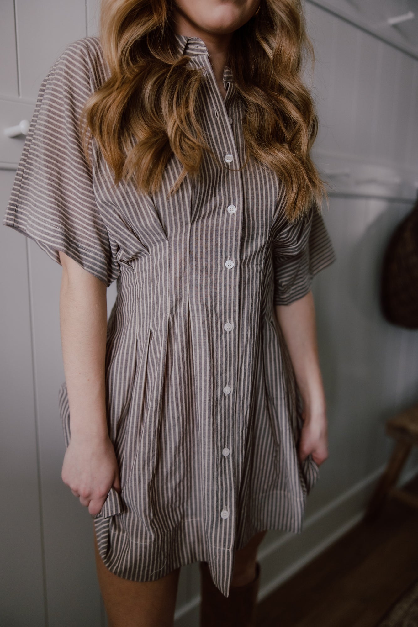 Feel your absolute best in the Alice Pleated Mini Dress! This striped, linen blend dress features the most flattering pleats around the waistline to snatch your figure in the best way!! Pair with your favorite sweater and knee high boots for your holiday house parties, or take on vacation when you get away from the cold for a perfect, easy to throw on outfit.