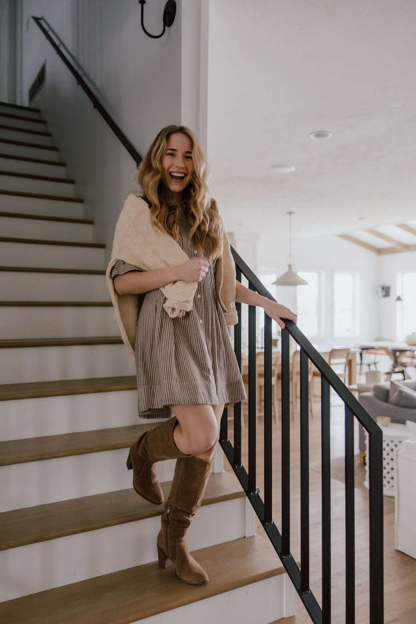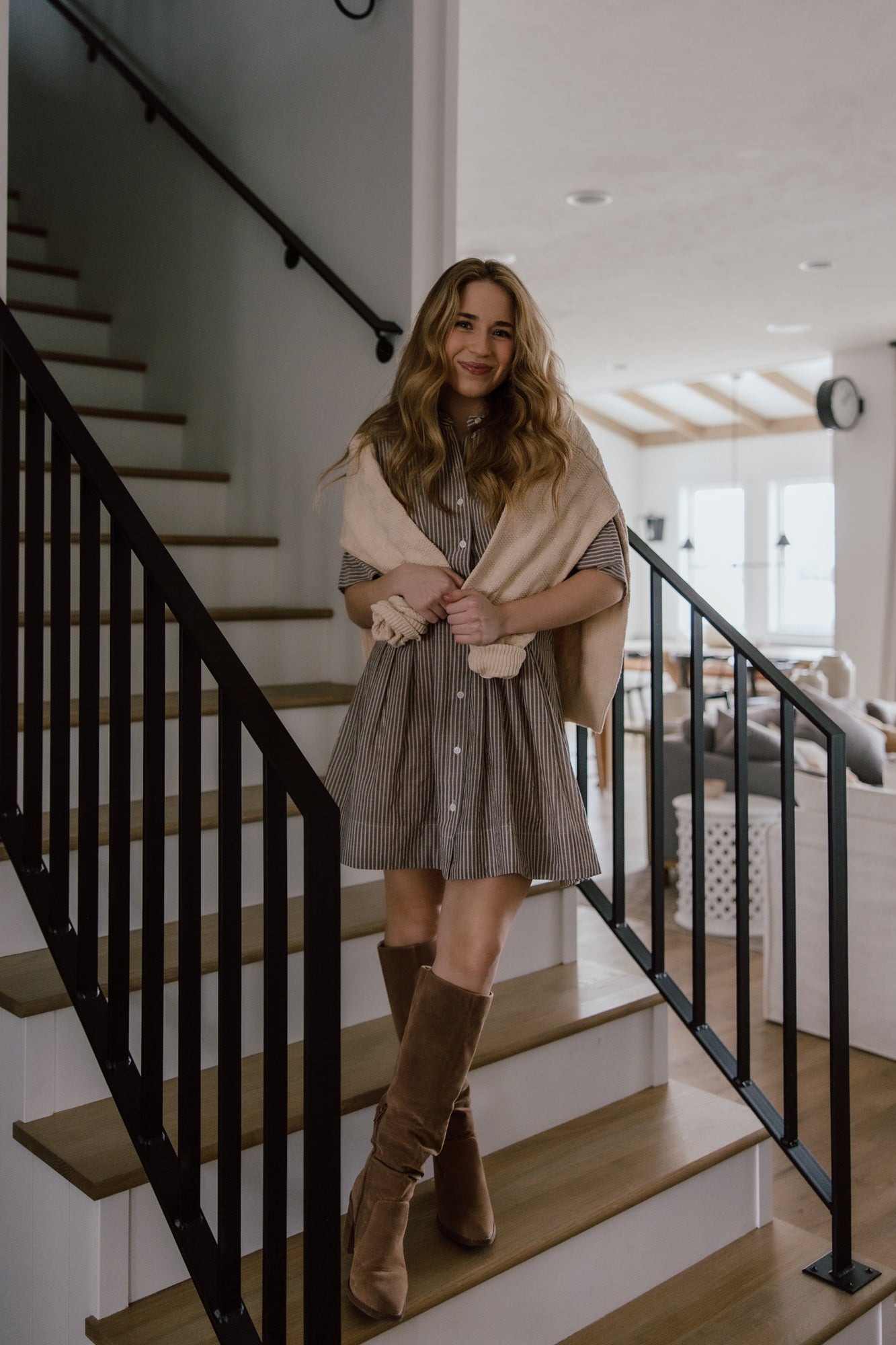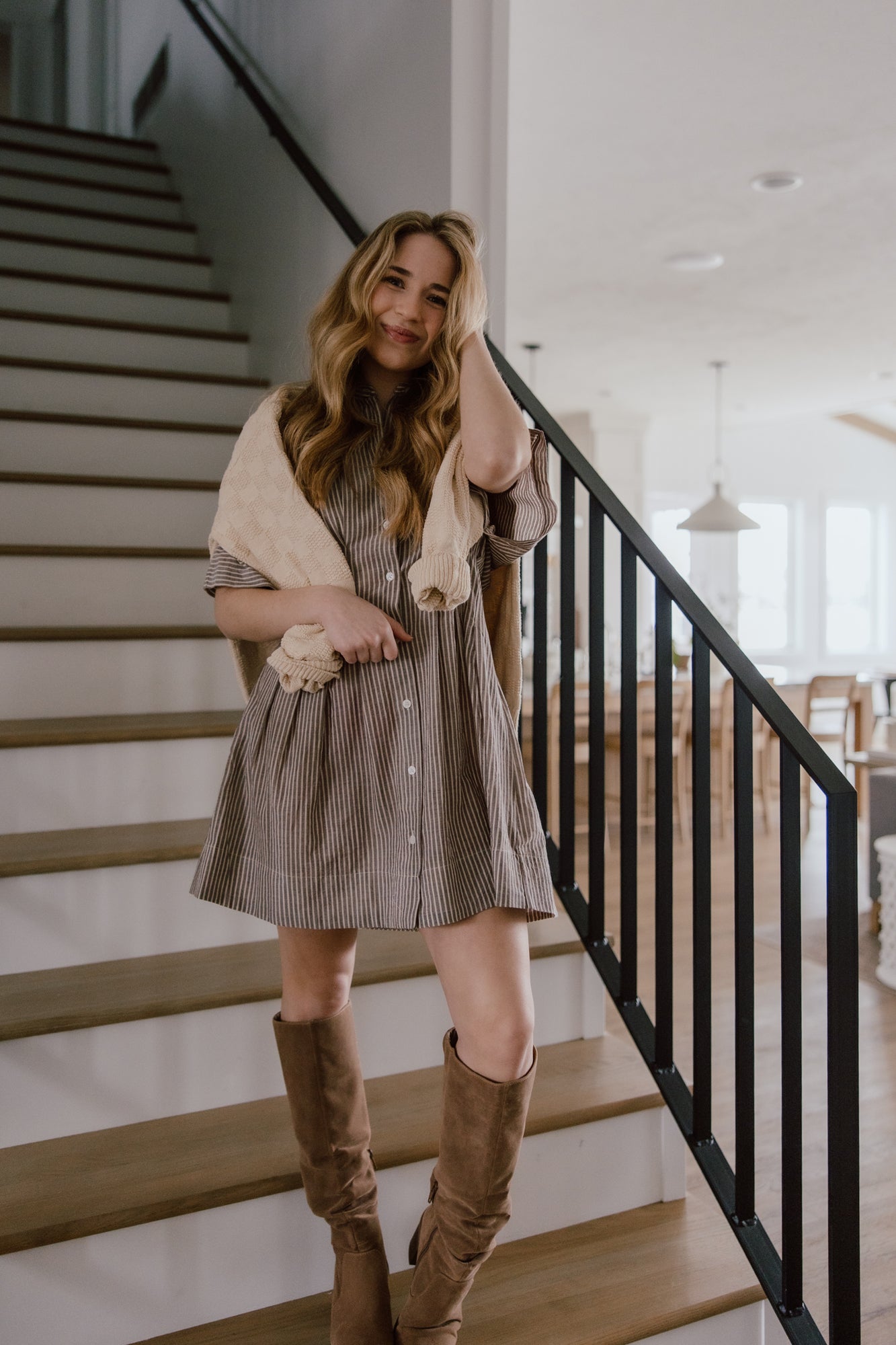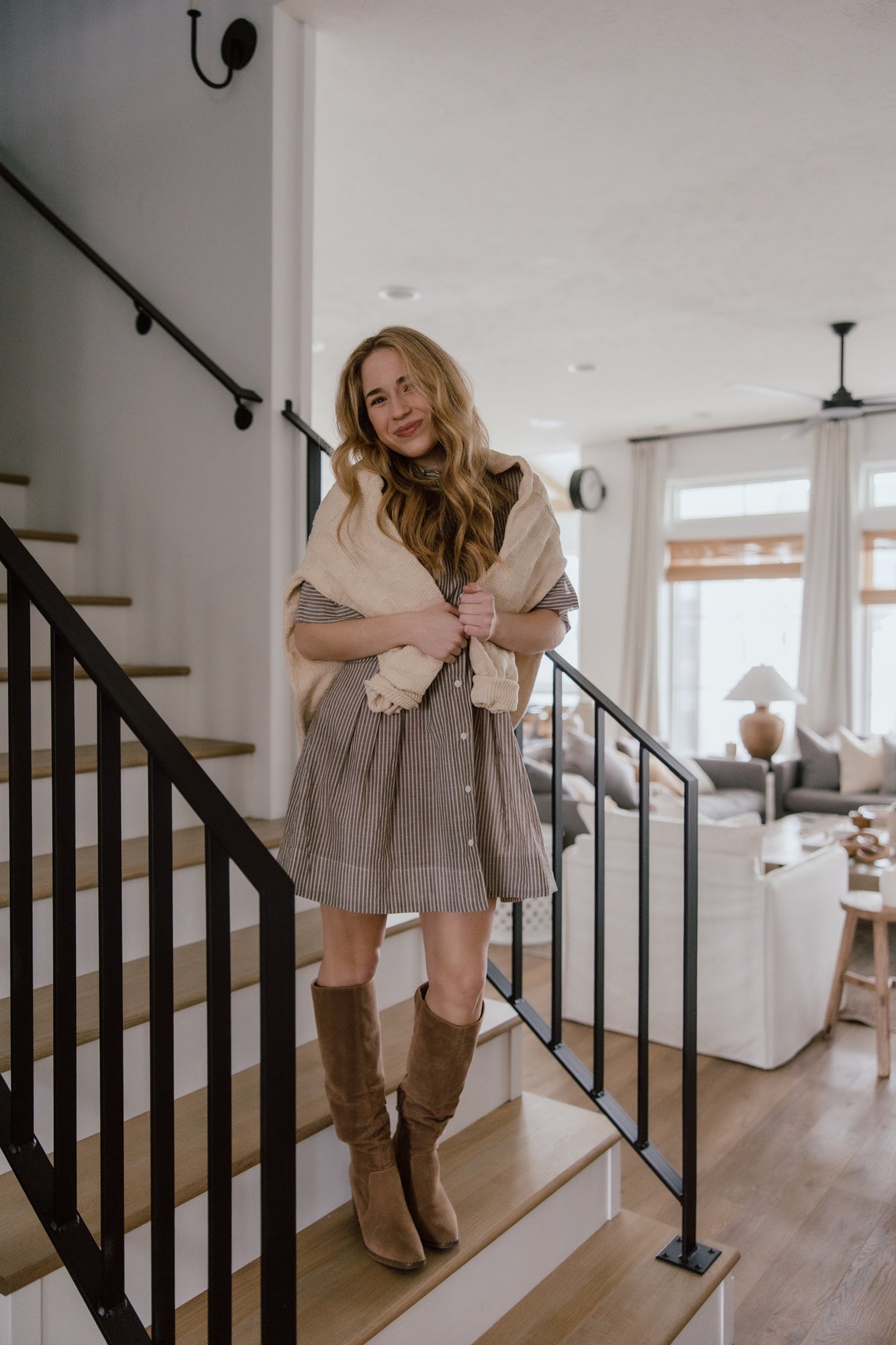 Feel your absolute best in the Alice Pleated Mini Dress! This striped, linen blend dress features the most flattering pleats around the waistline to snatch your figure in the best way!! Pair with your favorite sweater and knee high boots for your holiday house parties, or take on vacation when you get away from the cold for a perfect, easy to throw on outfit.
