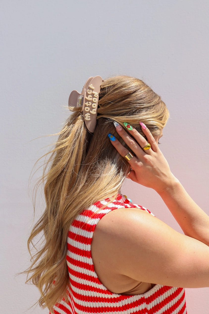 Our Motherhood claw is EVERYTHING! This claw is functional with a strong spring and long enough to hold all your hair or wear as a half up half down. But what makes this claw so special is the 3D Motherhood pieces on each side.