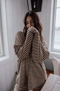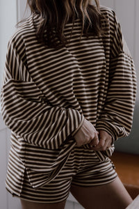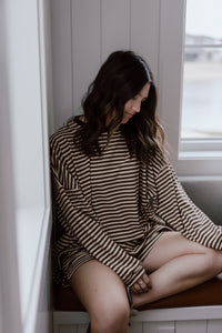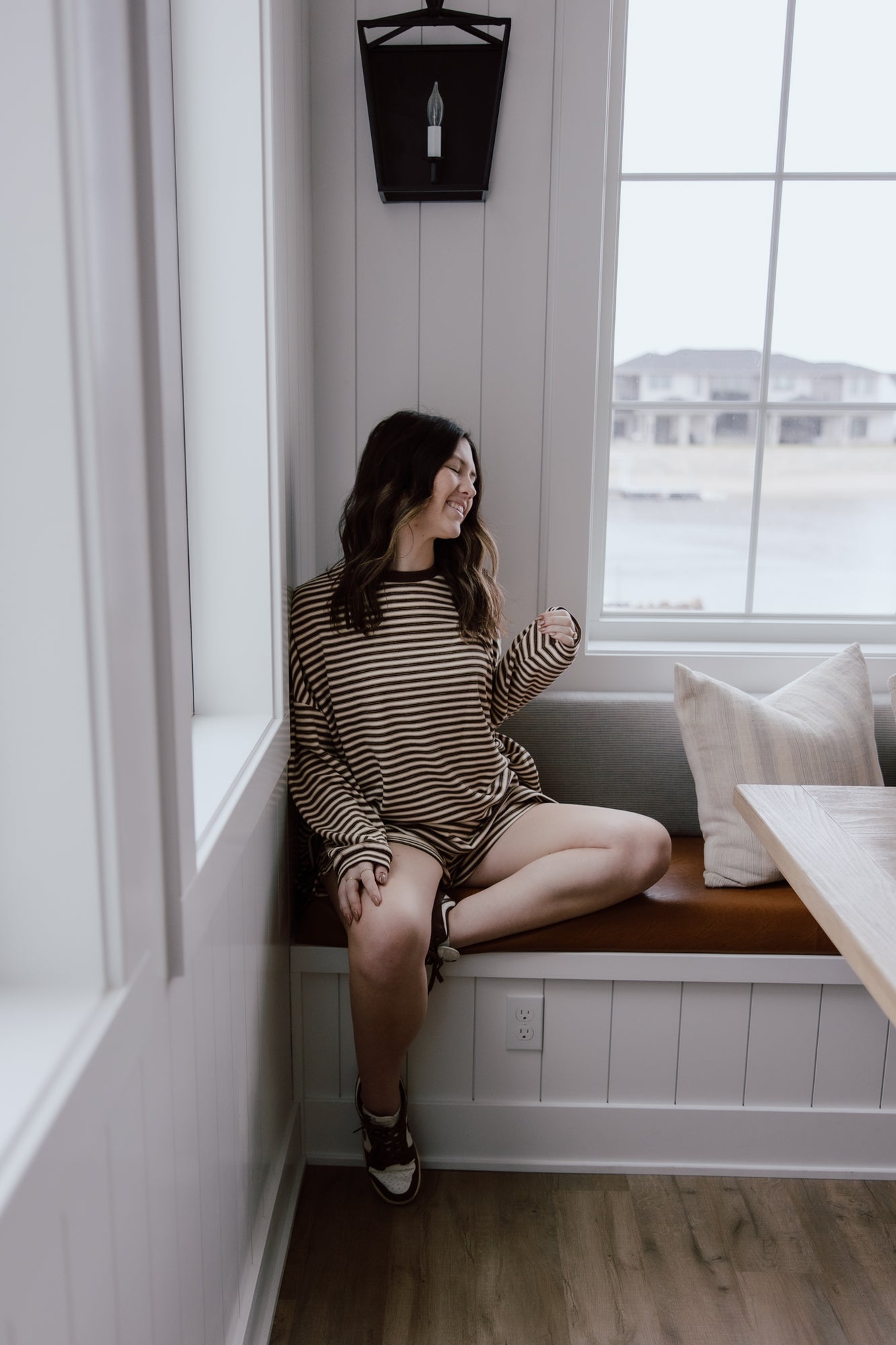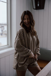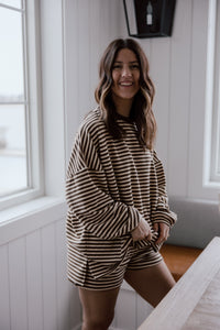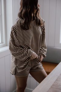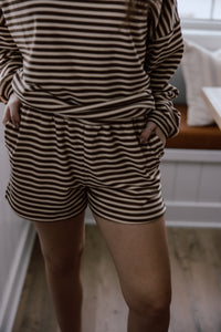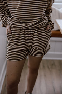 Our softest shorts EVER!! Get cozy this holiday season with in brushed up fabric, now in a new style ✨ The brushed up shorts are made from soft-as-a-blanket fabric, in the cutest vintage stripe pattern, featuring 2 side pockets, 1 back pocket, and an elastic waistband for top tier comfort and functionality. Pair with our Brushed Up Crew | Vintage Striped for the matching set