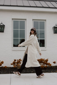 Big fans of big coats around here 😍 The Kimpton Oversized Coat is the PERFECT addition to your winter wardrobe this season. The long, soft, white fleece will keep you not only warm, but in style during even some of the coldest days. Features 2 side pockets, a single button closure, and a subtle collar.