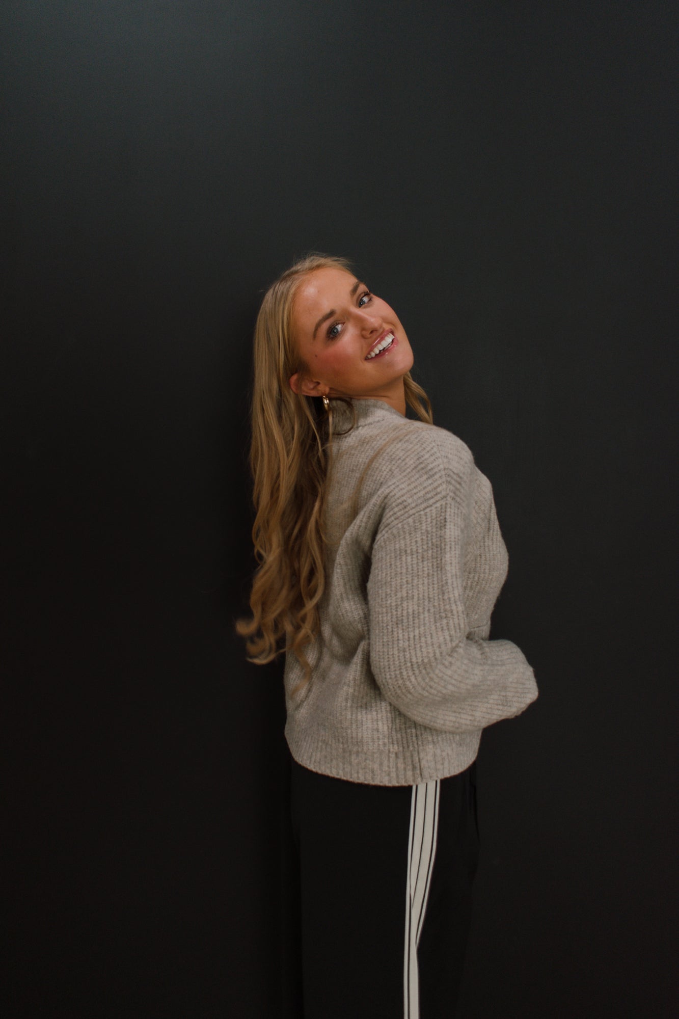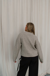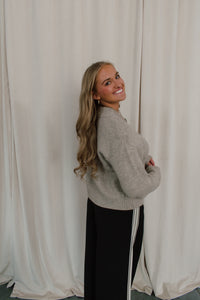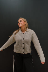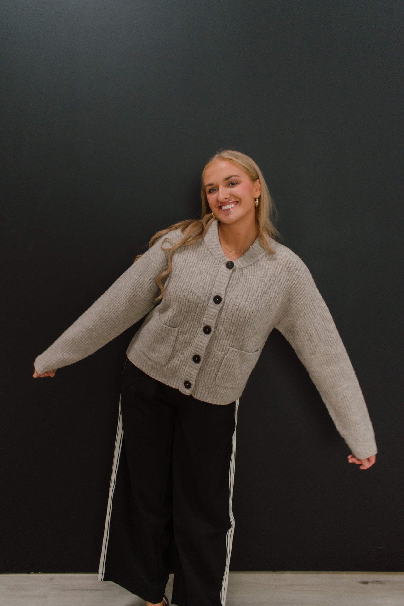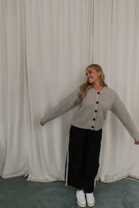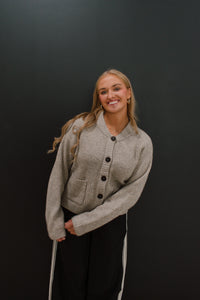 Staple cardigans are the best basic to fill your closet with this fall. Our new Dionna Cardigan is the perfect, warm grey knit sweater with large brown buttons, in a classic waist-length style. Pairs perfectly with all of your jeans, skirts, & trousers for endless outfits.