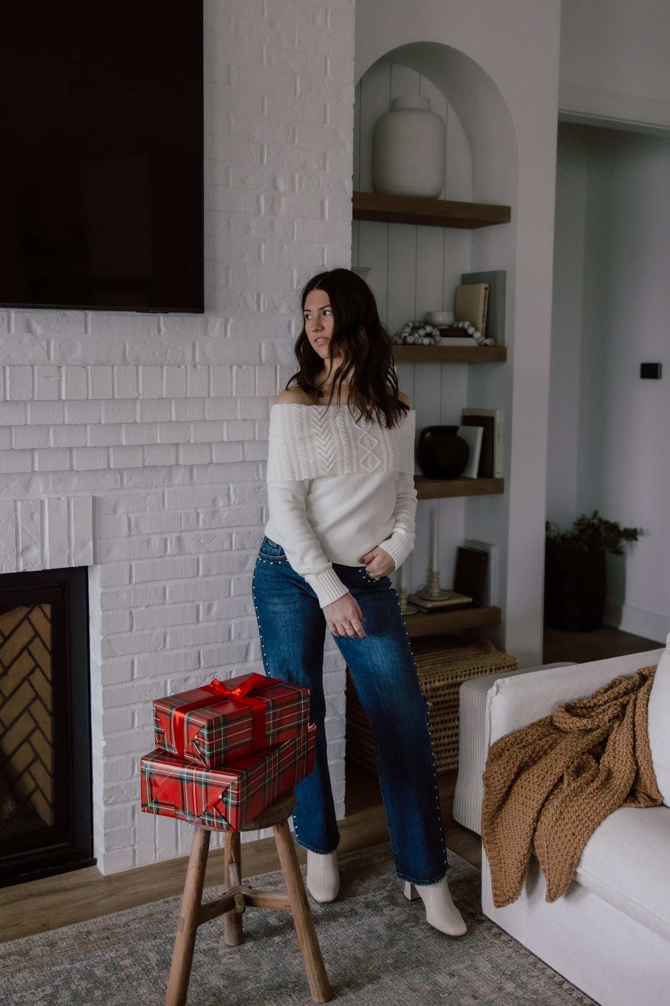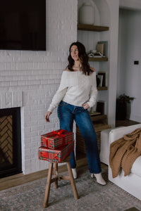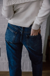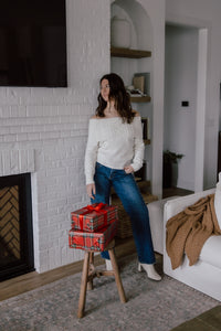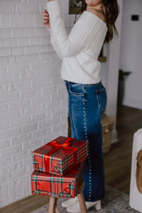 Fun jeans are our love language. Our new studded jeans are a low rise, full length fit with silver studs down the side seams & pockets of each leg. The dark wash, relaxed, straight leg fit are perfect for all of your winter occassions.