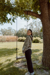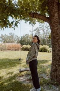 • Cambri is wearing a size medium in the light blue & a large in the dark brown
