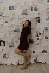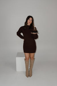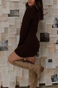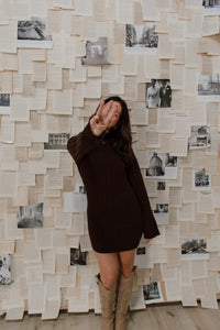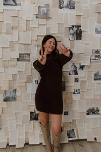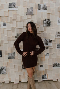 Feel your best this fall in our Lorenza Dress. This soft, sweater mini dress is made from cozy knit material in a thick rib pattern with the cutest mockneck for a timeless, chic look.